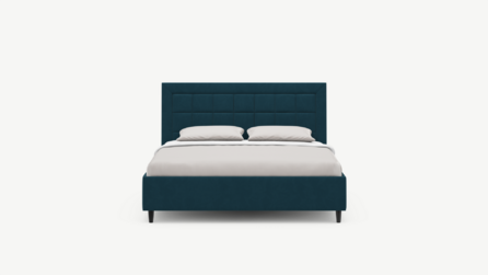 Изголовье декорировано рельефным рисунком стежки в крупный квадрат, получившим особую фактуру за счет глубины шва.