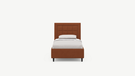 Изголовье декорировано рельефным рисунком стежки в крупный квадрат, получившим особую фактуру за счет глубины шва.