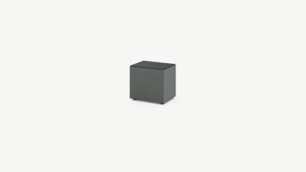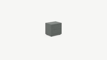 Обратная сторона тумбы, выполненная в обивочной ткани, позволяет ставить ее в центре комнаты и зонировать пространство.