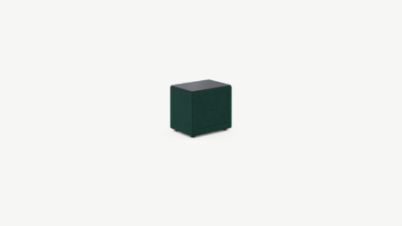 Обратная сторона тумбы, выполненная в обивочной ткани, позволяет ставить ее в центре комнаты и зонировать пространство.