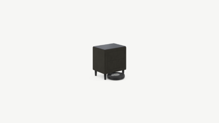 Обратная сторона тумбы, выполненная в обивочной ткани, позволяет ставить ее в центре комнаты и зонировать пространство.