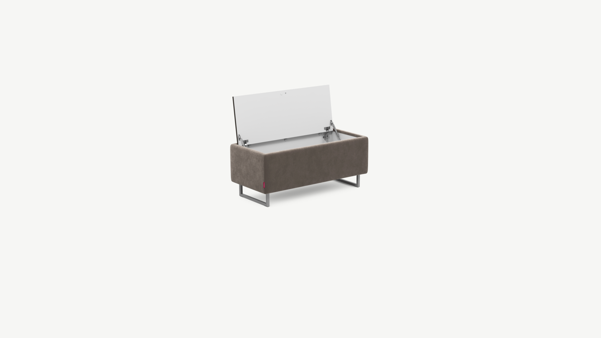 MOON 117 снабжена встроенной столешницей, а также вместительной емкостью для хранения. Легкий доступ к внутренней части банкетки обеспечивает скрытая в столешнице ультратонкая ручка. Оснащенная газовыми амортизаторами, крышка-столешница функционирует плавно и бесшумно. Надежно фиксируясь в открытом положении, она обеспечивает комфортный доступ к содержимому.