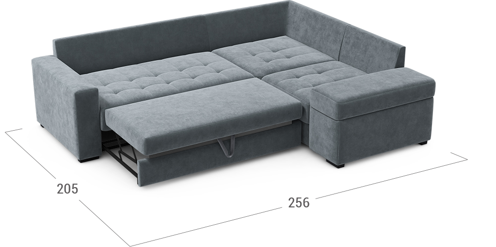 Механизм трансформации «Дельфин» подходит для ежедневного использования. Выкатная секция выполнена в обивочной ткани, поэтому даже в разобранном виде диван выглядит презентабельно.