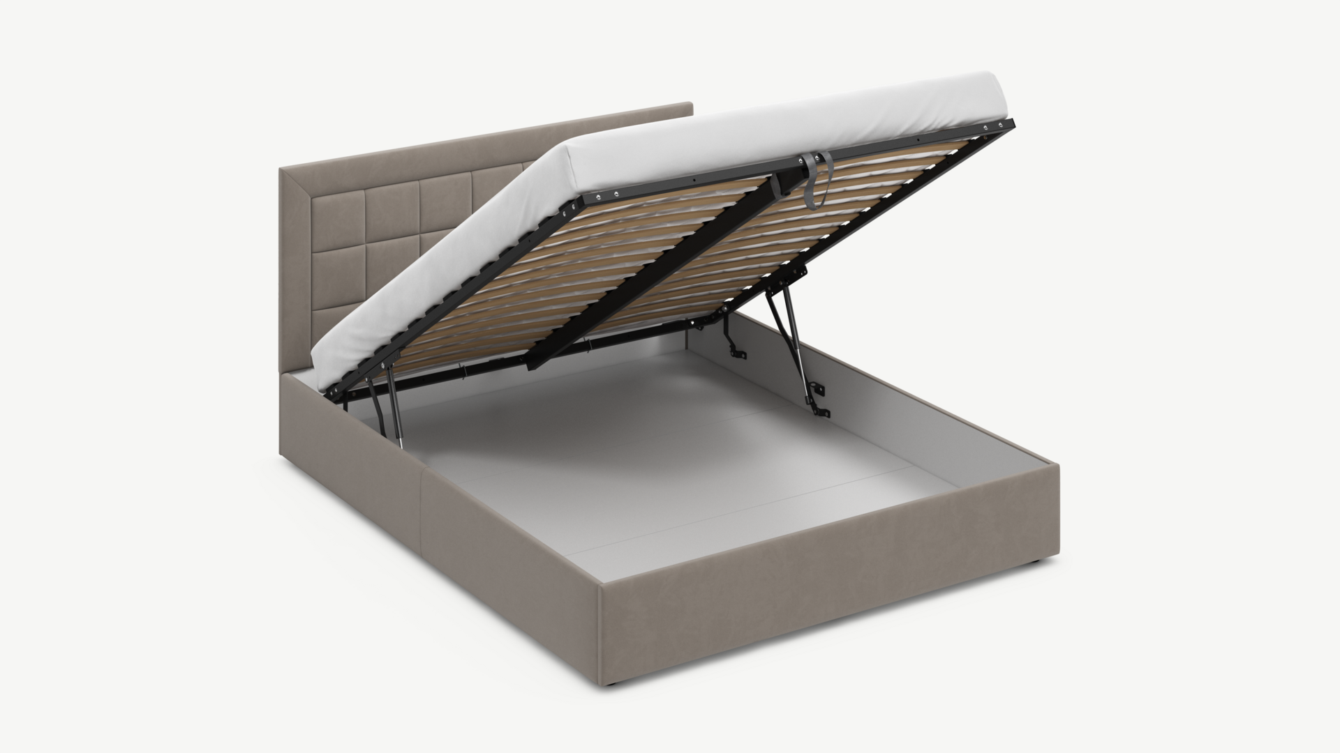 Регулируемый подъемный механизм с газовыми амортизаторами позволяет плавно и бесшумно поднимать и опускать спальное место.