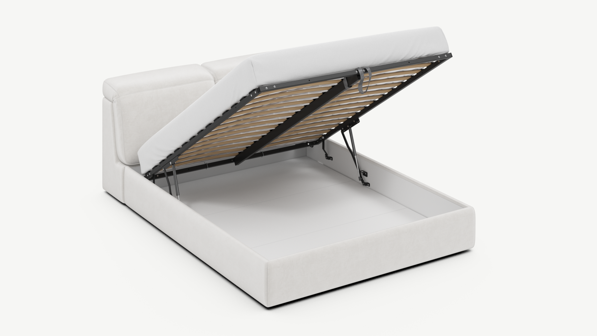 - Скрытая под основанием вместительная емкость без внутренних перегородок позволяет использовать всю площадь подкроватного пространства для хранения вещей.