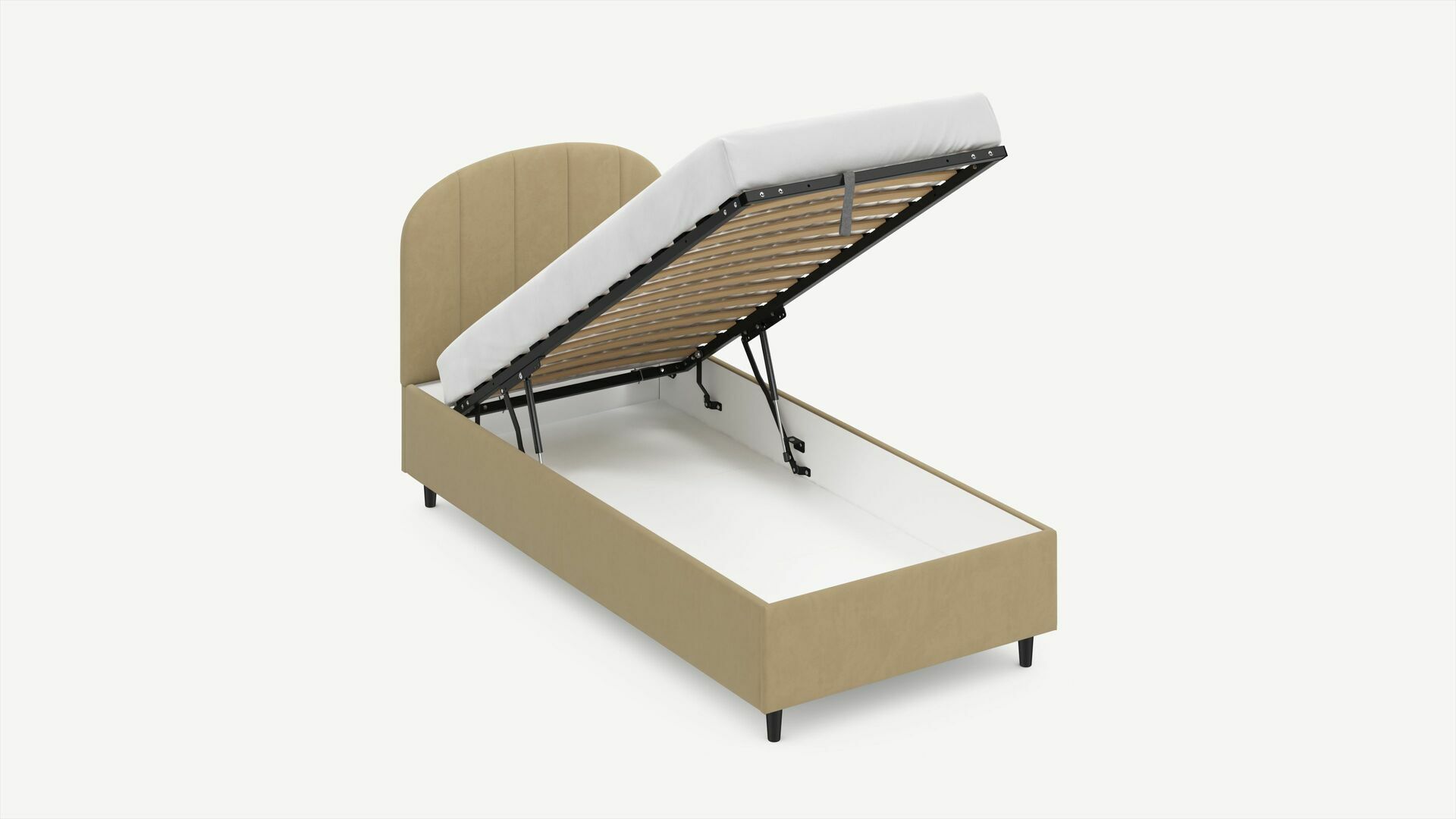 • Скрытая под основанием вместительная емкость без внутренних перегородок позволяет использовать всю площадь подкроватного пространства для хранения вещей.