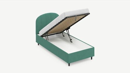 - Скрытая под основанием вместительная емкость без внутренних перегородок позволяет использовать всю площадь подкроватного пространства для хранения вещей.