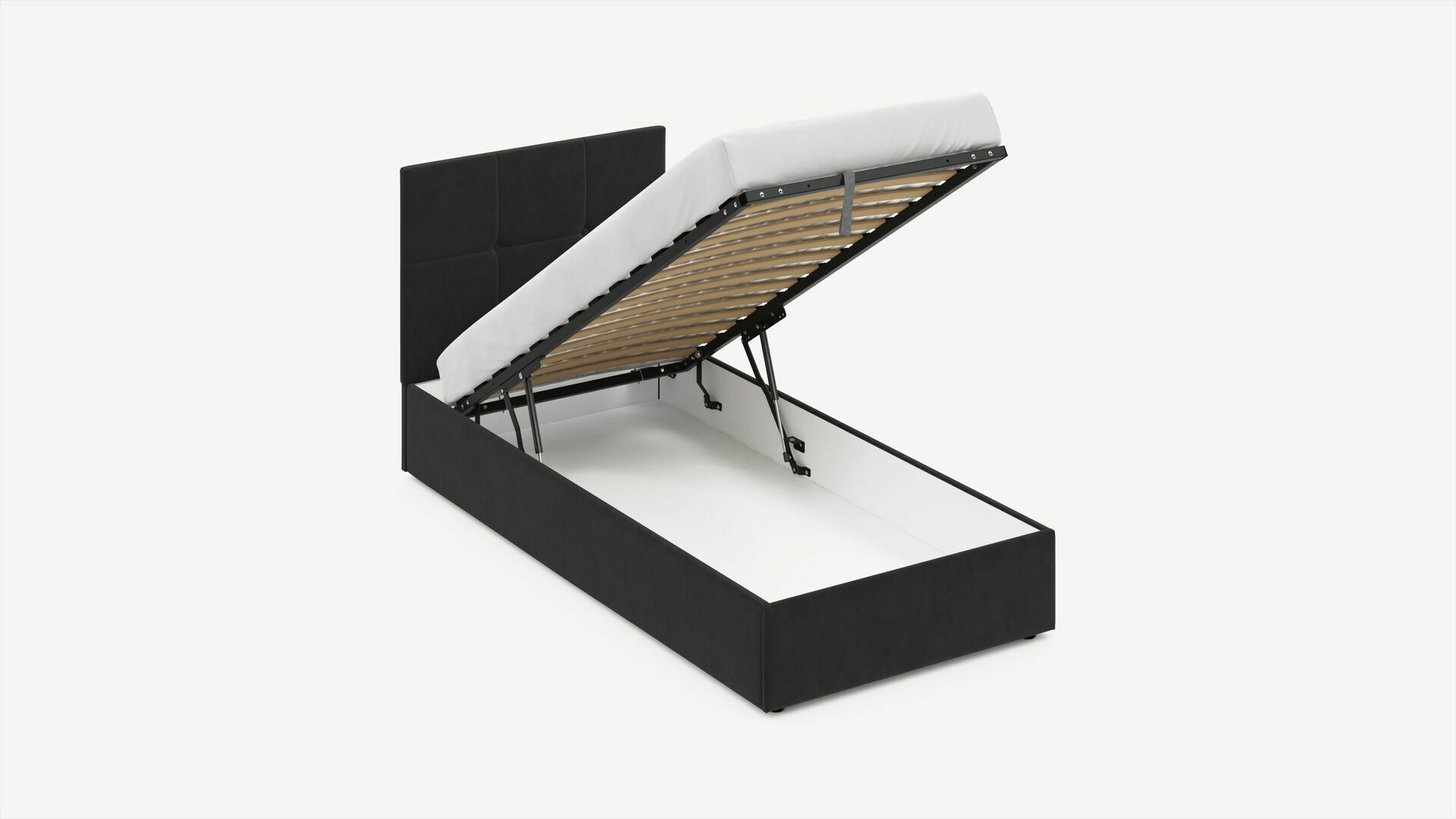 • Скрытая под основанием вместительная емкость без внутренних перегородок позволяет использовать всю площадь подкроватного пространства для хранения вещей.