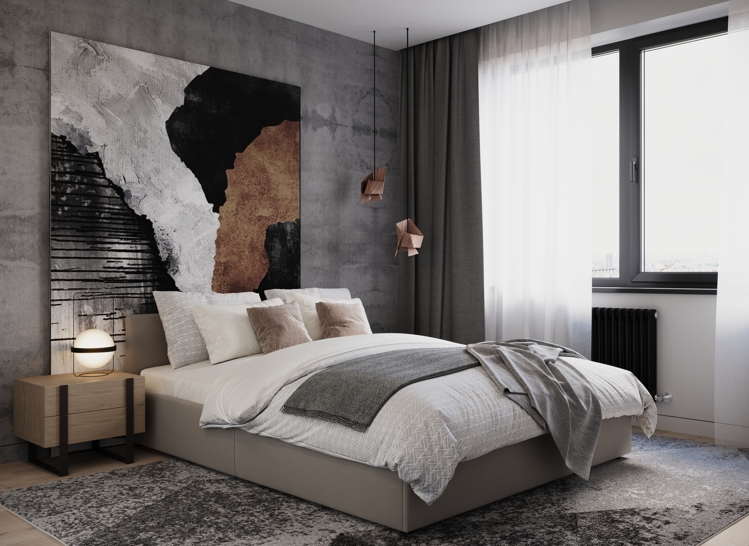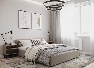 Создать гармоничный интерьер и завершить образ спальни помогут дополнительные аксессуары, например: тумбы, банкетки, подушки.