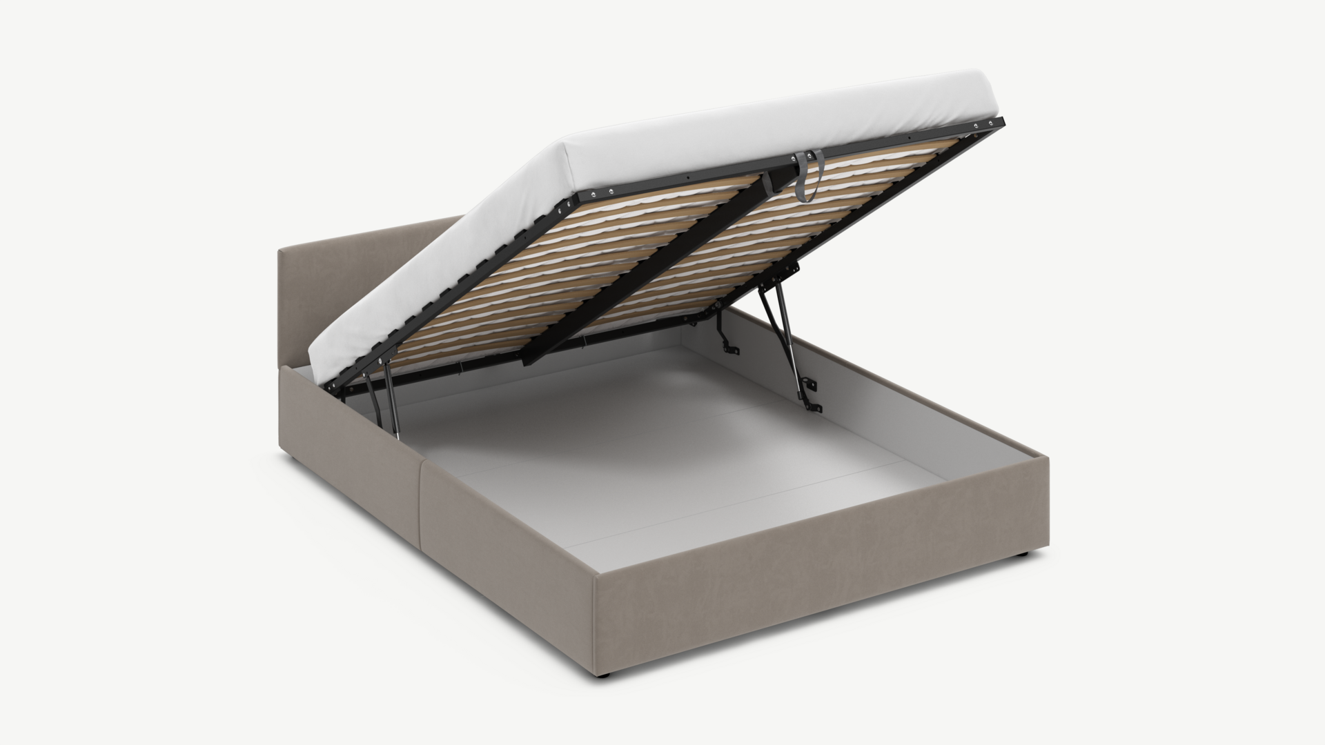 • Скрытая под основанием вместительная емкость без внутренних перегородок позволяет использовать всю площадь подкроватного пространства для хранения вещей.