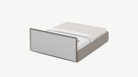 Фактура обивочного материала подбирается дизайнерами MOON с учетом технологических и стилевых особенностей кровати.
