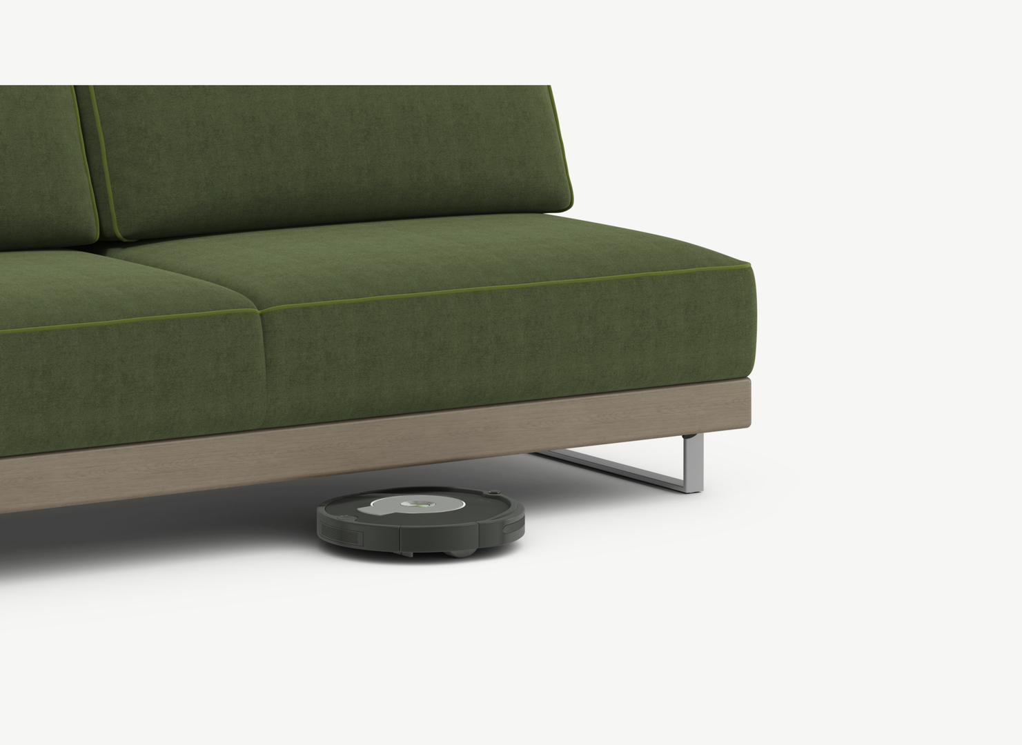 Благодаря высоким прямоугольным опорам под диваном проходит робот-пылесос и легко проводится влажная уборка, что обеспечивает чистоту и порядок в доме.