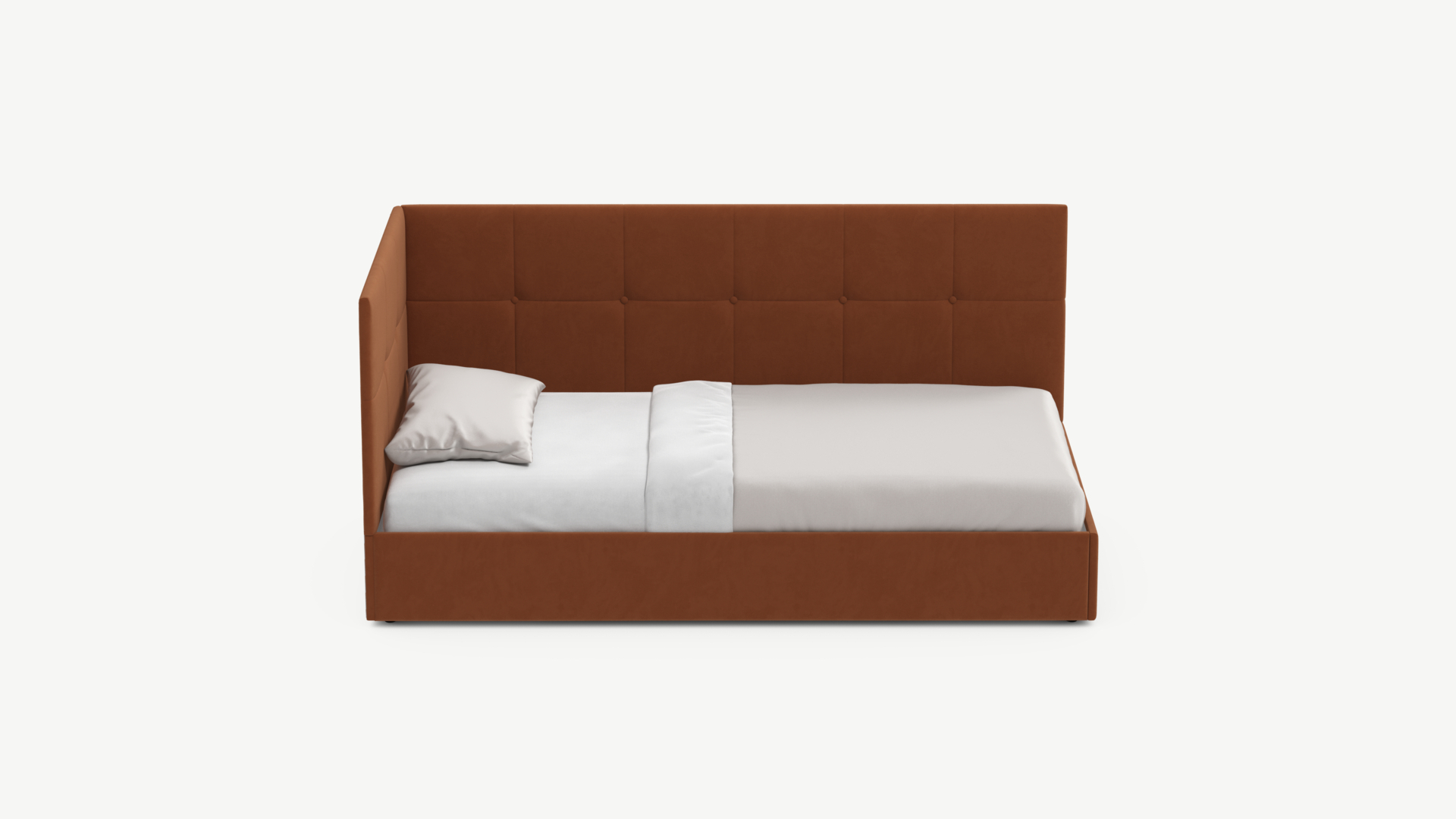 MOON FAMILY 1261 объединяет функциональность и стиль, создавая гармоничное пространство для отдыха и творчества. Кровать доступна в левостороннем и правостороннем исполнении, что позволяет легко адаптировать ее под любые интерьерные особенности.
