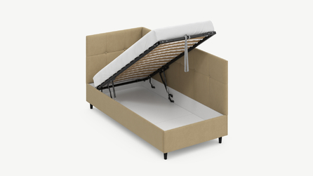 • Скрытая под основанием вместительная емкость без внутренних перегородок позволяет использовать всю площадь подкроватного пространства для хранения вещей.