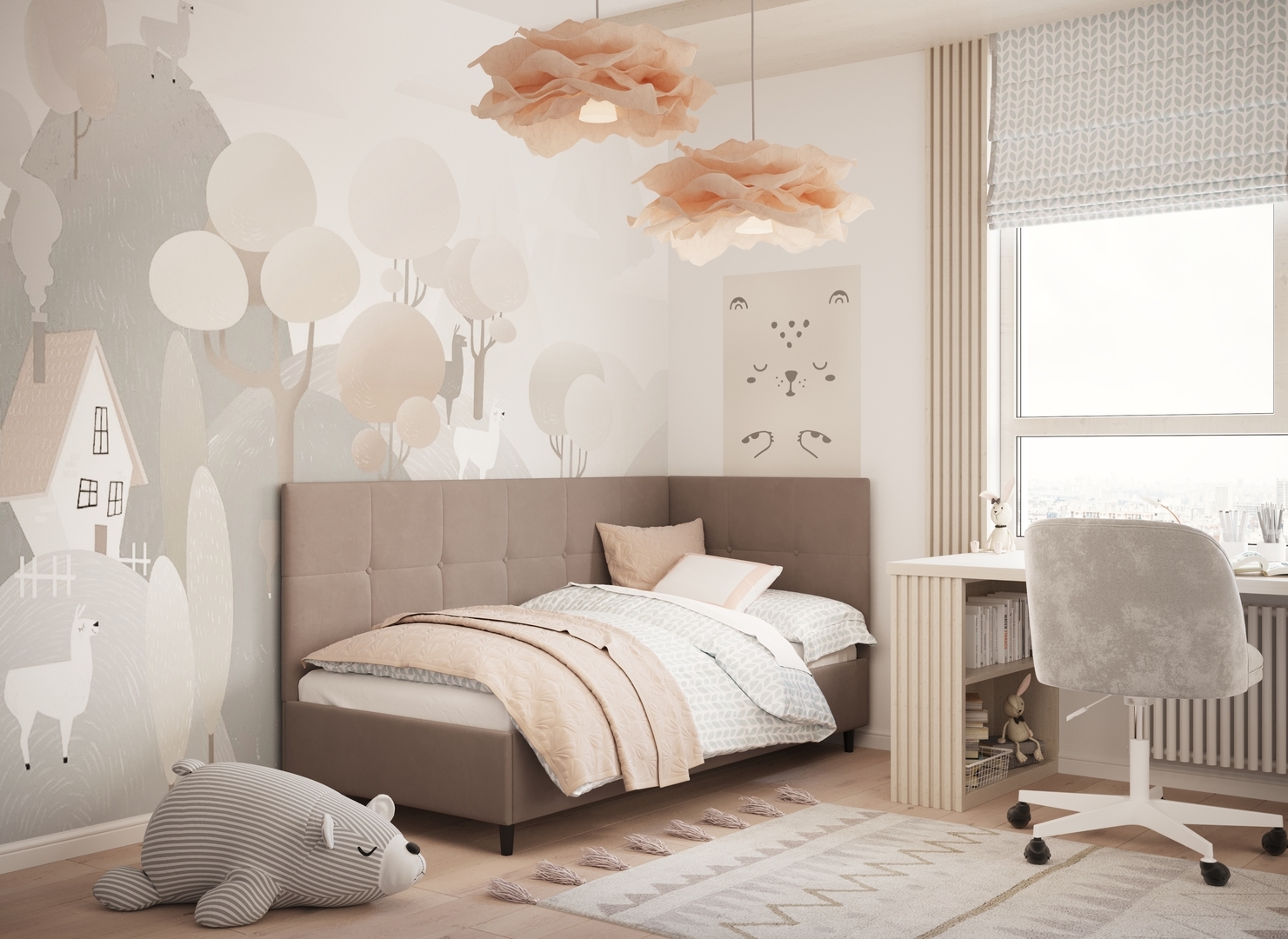 В подростковой комнате эта кровать станет стильным акцентом окружающего интерьера и возьмет на себя роль удобной кушетки для друзей, зашедших в гости.