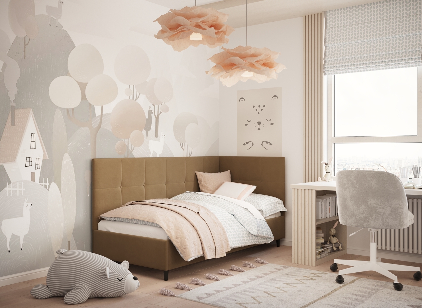 В подростковой комнате эта кровать станет стильным акцентом окружающего интерьера и возьмет на себя роль удобной кушетки для друзей, зашедших в гости.