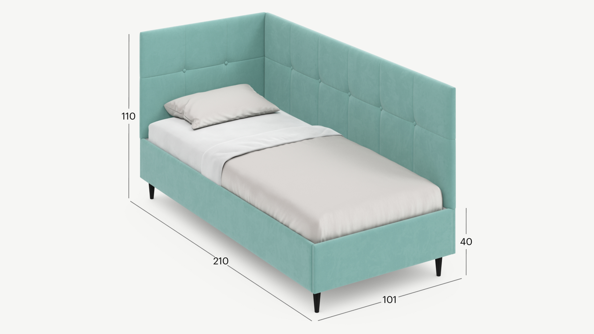 Угловая односпальная кровать MOON FAMILY 1261 с мягкой спинкой и изголовьем создаст в Вашей спальне ощущение уюта. Крупная квадратная стежка привносит в интерьер графических акцентов, а вставка из пуговиц наполняет пространство ощущением домашнего тепла.