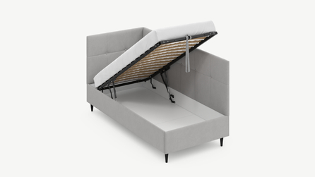 • Скрытая под основанием вместительная емкость без внутренних перегородок позволяет использовать всю площадь подкроватного пространства для хранения вещей.
