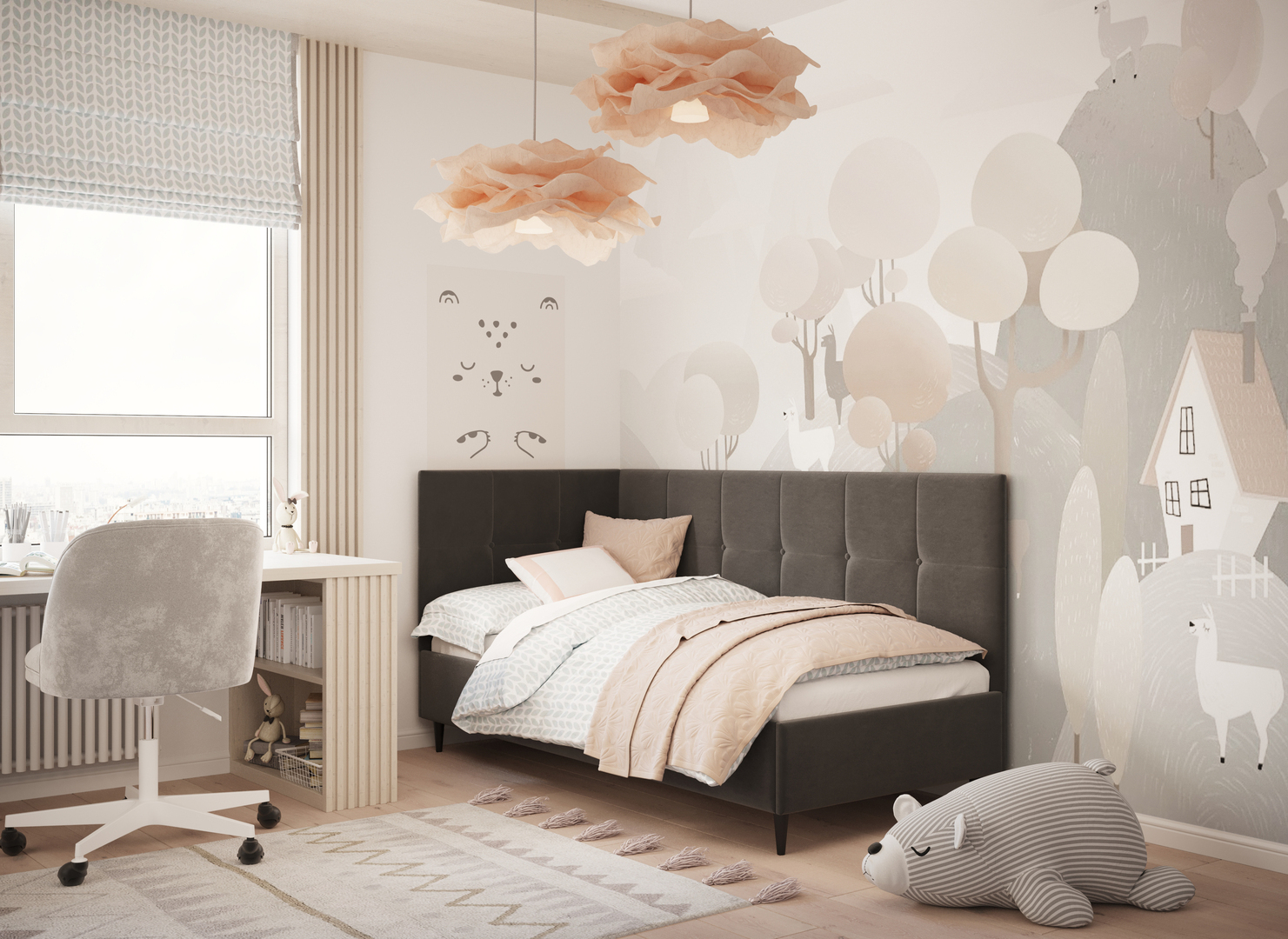 В подростковой комнате эта кровать станет стильным акцентом окружающего интерьера и возьмет на себя роль удобной кушетки для друзей, зашедших в гости.