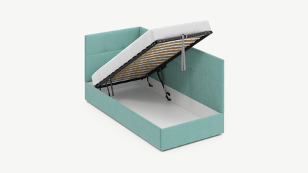 • Скрытая под основанием вместительная емкость без внутренних перегородок позволяет использовать всю площадь подкроватного пространства для хранения вещей.
