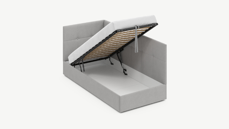 • Скрытая под основанием вместительная емкость без внутренних перегородок позволяет использовать всю площадь подкроватного пространства для хранения вещей.