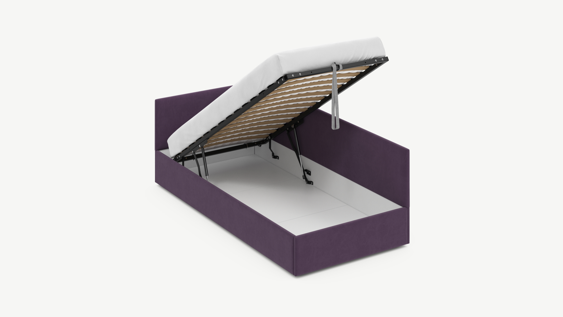 • Скрытая под основанием вместительная емкость без внутренних перегородок позволяет использовать всю площадь подкроватного пространства для хранения вещей.