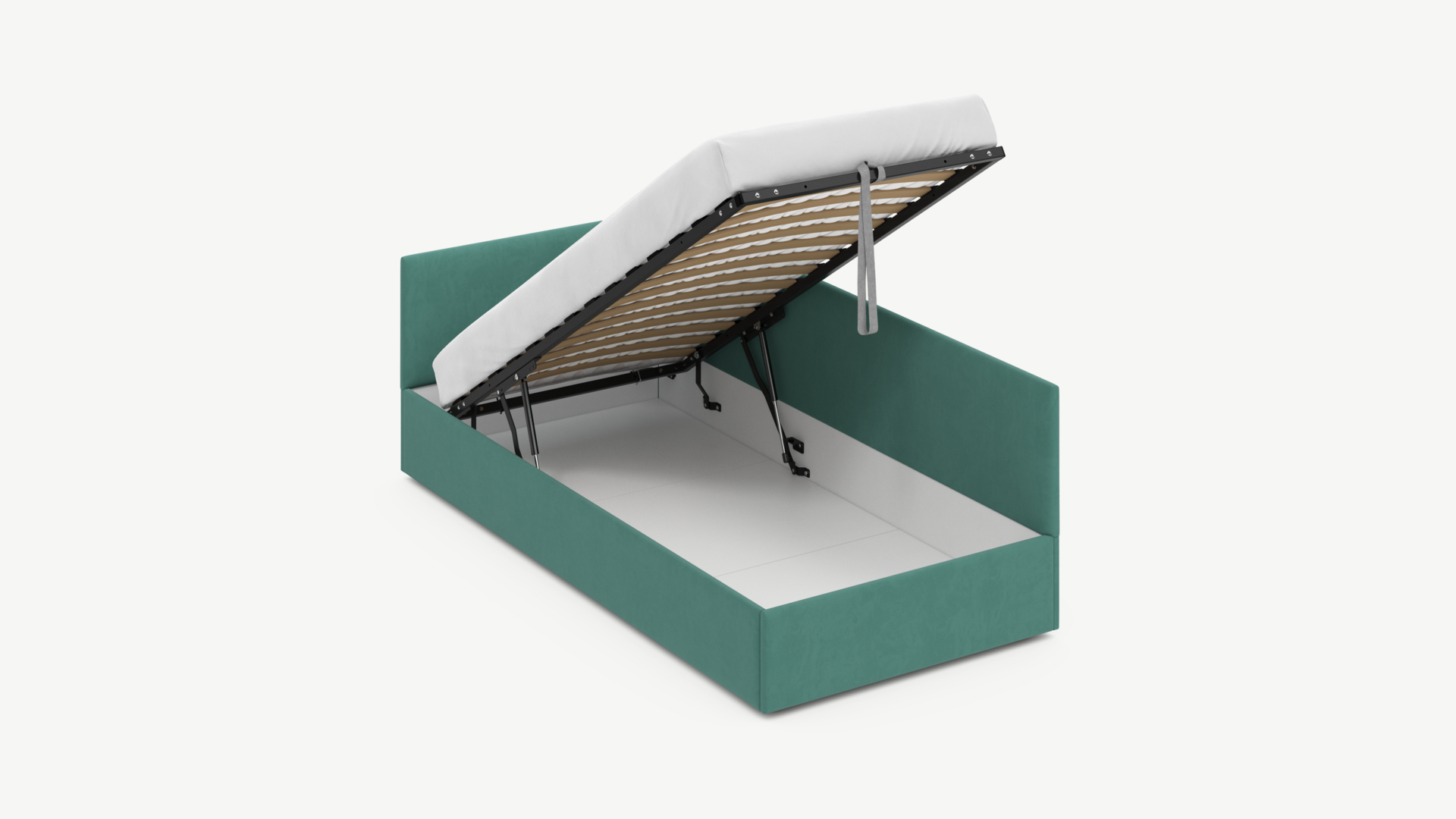 • Скрытая под основанием вместительная емкость без внутренних перегородок позволяет использовать всю площадь подкроватного пространства для хранения вещей.