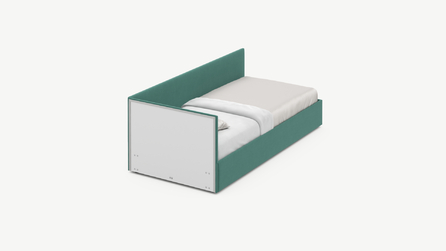 MOON FAMILY 1250 объединяет функциональность и стиль, создавая гармоничное пространство для отдыха и творчества. Кровать доступна в левостороннем и правостороннем исполнении, что позволяет легко адаптировать ее под любые интерьерные особенности.