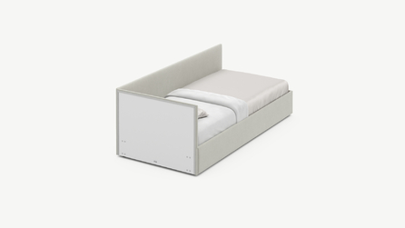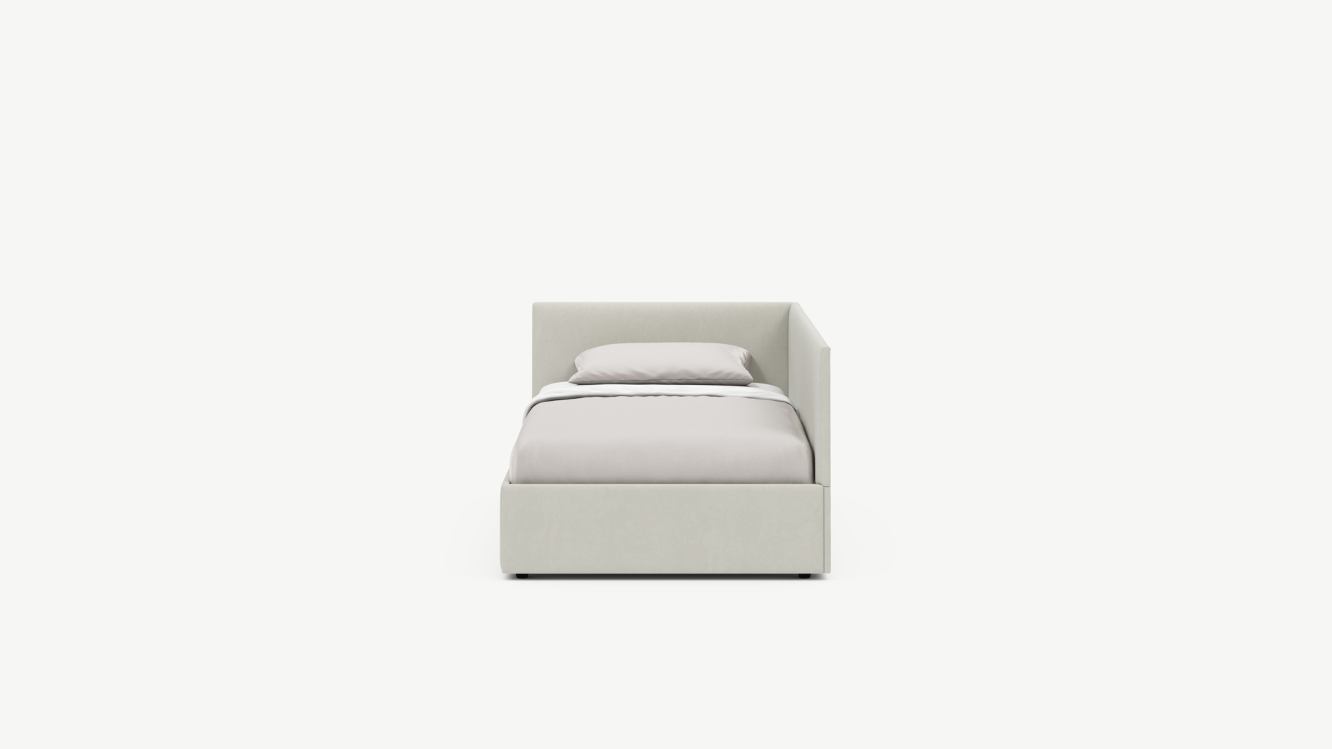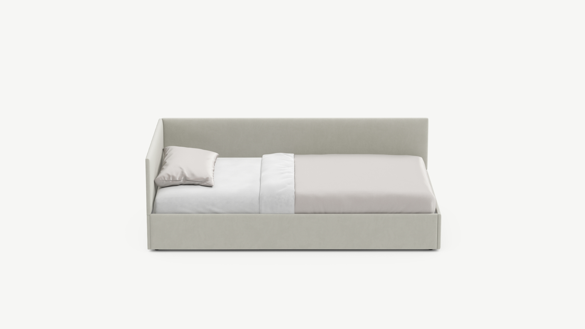 MOON FAMILY 1250 объединяет функциональность и стиль, создавая гармоничное пространство для отдыха и творчества. Кровать доступна в левостороннем и правостороннем исполнении, что позволяет легко адаптировать ее под любые интерьерные особенности.