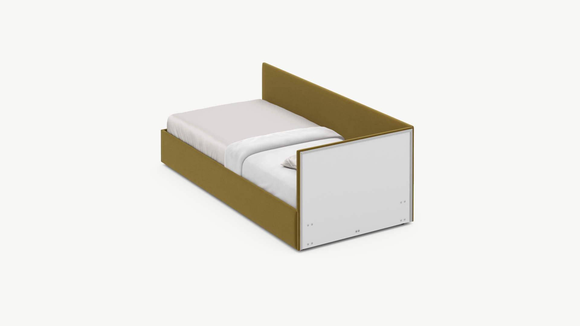 MOON FAMILY 1250 объединяет функциональность и стиль, создавая гармоничное пространство для отдыха и творчества. Кровать доступна в левостороннем и правостороннем исполнении, что позволяет легко адаптировать ее под любые интерьерные особенности.