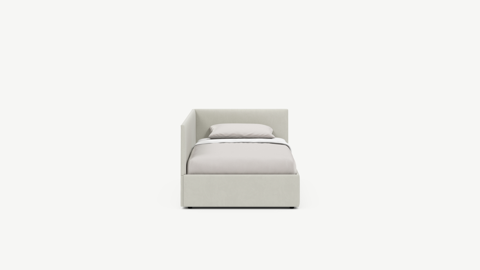 MOON FAMILY 1250 объединяет функциональность и стиль, создавая гармоничное пространство для отдыха и творчества. Кровать доступна в левостороннем и правостороннем исполнении, что позволяет легко адаптировать ее под любые интерьерные особенности.