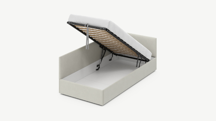 • Скрытая под основанием вместительная емкость без внутренних перегородок позволяет использовать всю площадь подкроватного пространства для хранения вещей.