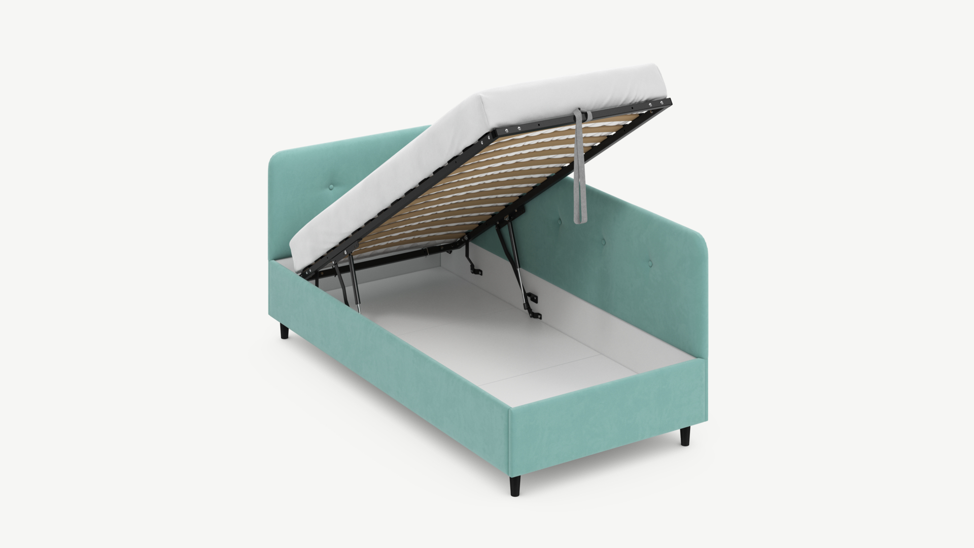 • Скрытая под основанием вместительная емкость без внутренних перегородок позволяет использовать всю площадь подкроватного пространства для хранения вещей.