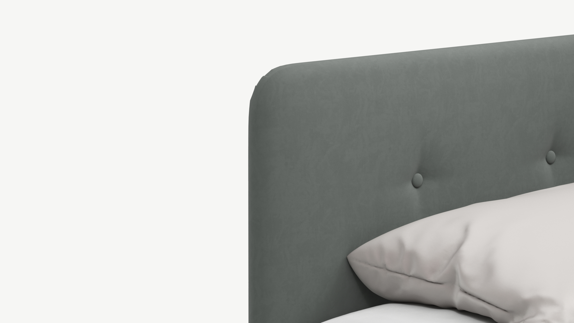 Угловая односпальная кровать MOON FAMILY 1253 с мягкой спинкой и изголовьем обладает округлыми формами, привносящими в интерьер нотки нежности. Изголовье, украшенное пуговицами, добавляет окружающему пространству шарм и уют. Высокие опоры придают кровати визуальной легкости, а также обеспечивают удобство во время уборки.