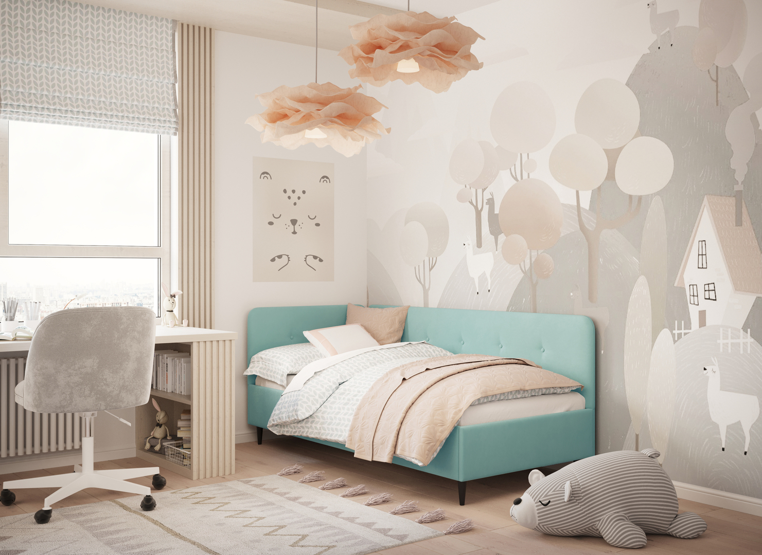 В подростковой комнате эта кровать станет стильным акцентом окружающего интерьера и возьмет на себя роль удобной кушетки для друзей, зашедших в гости.
