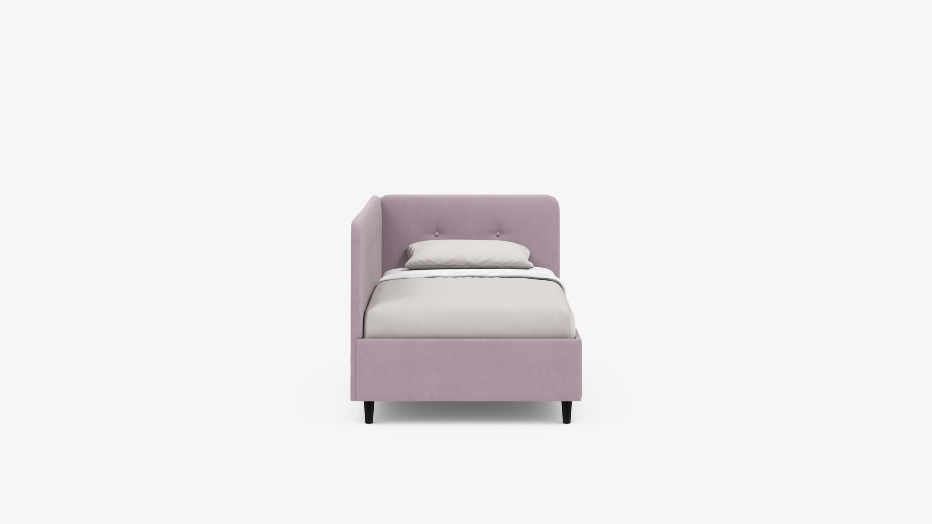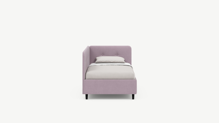 Угловая односпальная кровать MOON FAMILY 1253 с мягкой спинкой и изголовьем обладает округлыми формами, привносящими в интерьер нотки нежности. Изголовье, украшенное пуговицами, добавляет окружающему пространству шарм и уют. Высокие опоры придают кровати визуальной легкости, а также обеспечивают удобство во время уборки.