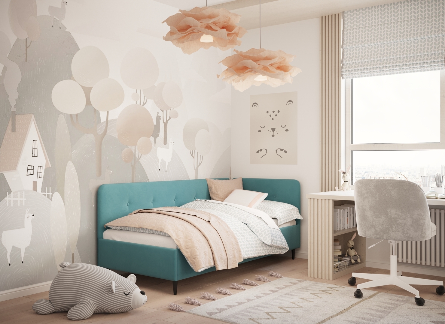 В подростковой комнате эта кровать станет стильным акцентом окружающего интерьера и возьмет на себя роль удобной кушетки для друзей, зашедших в гости.