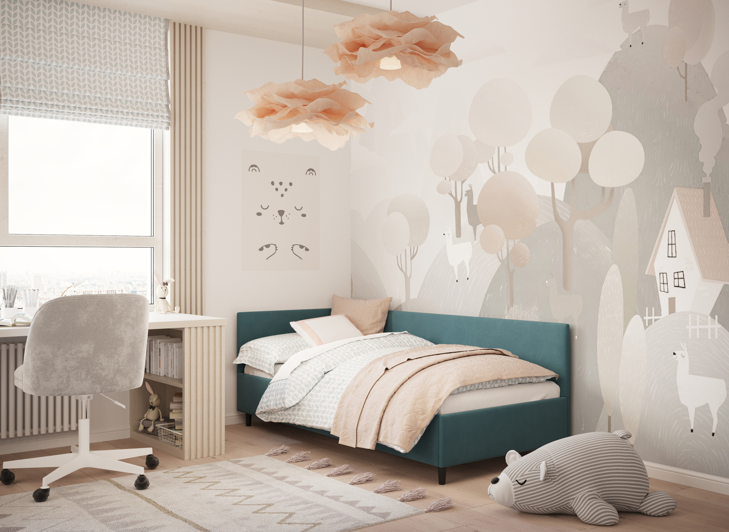 В подростковой комнате эта кровать станет стильным акцентом окружающего интерьера и возьмет на себя роль удобной кушетки для друзей, зашедших в гости.
