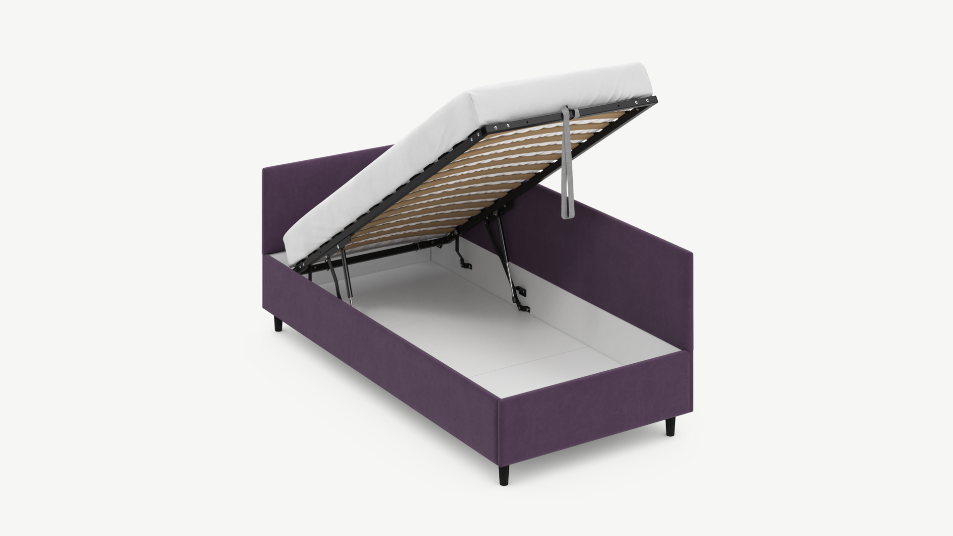 • Скрытая под основанием вместительная емкость без внутренних перегородок позволяет использовать всю площадь подкроватного пространства для хранения вещей.