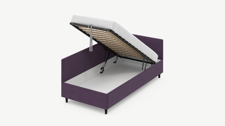 • Скрытая под основанием вместительная емкость без внутренних перегородок позволяет использовать всю площадь подкроватного пространства для хранения вещей.