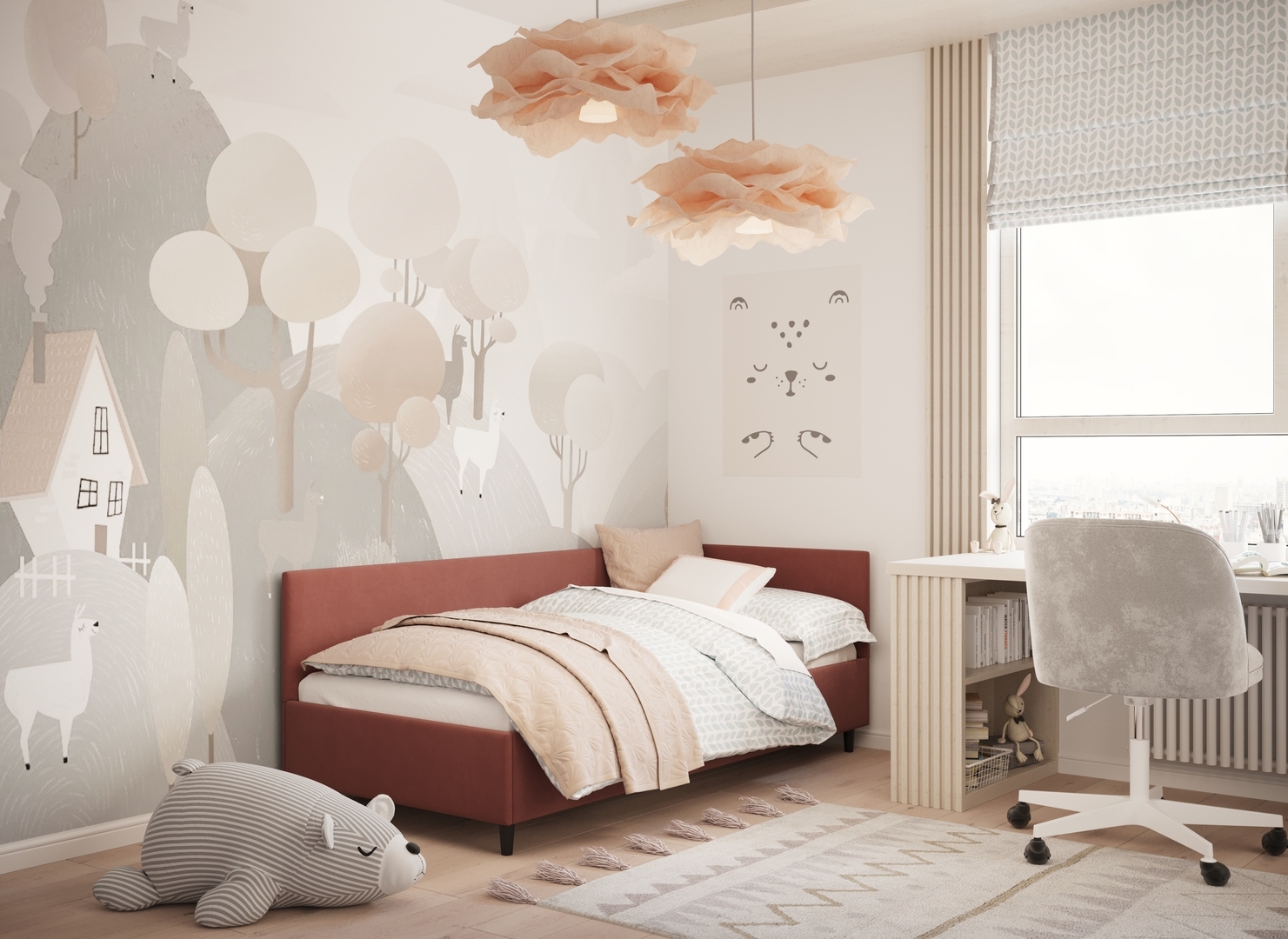 В подростковой комнате эта кровать станет стильным акцентом окружающего интерьера и возьмет на себя роль удобной кушетки для друзей, зашедших в гости.