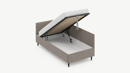 • Скрытая под основанием вместительная емкость без внутренних перегородок позволяет использовать всю площадь подкроватного пространства для хранения вещей.