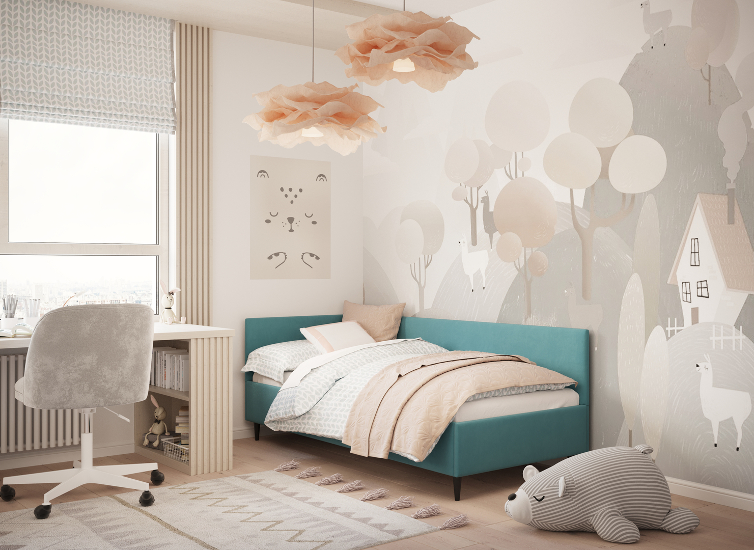 В подростковой комнате эта кровать станет стильным акцентом окружающего интерьера и возьмет на себя роль удобной кушетки для друзей, зашедших в гости.