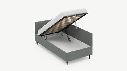 • Скрытая под основанием вместительная емкость без внутренних перегородок позволяет использовать всю площадь подкроватного пространства для хранения вещей.