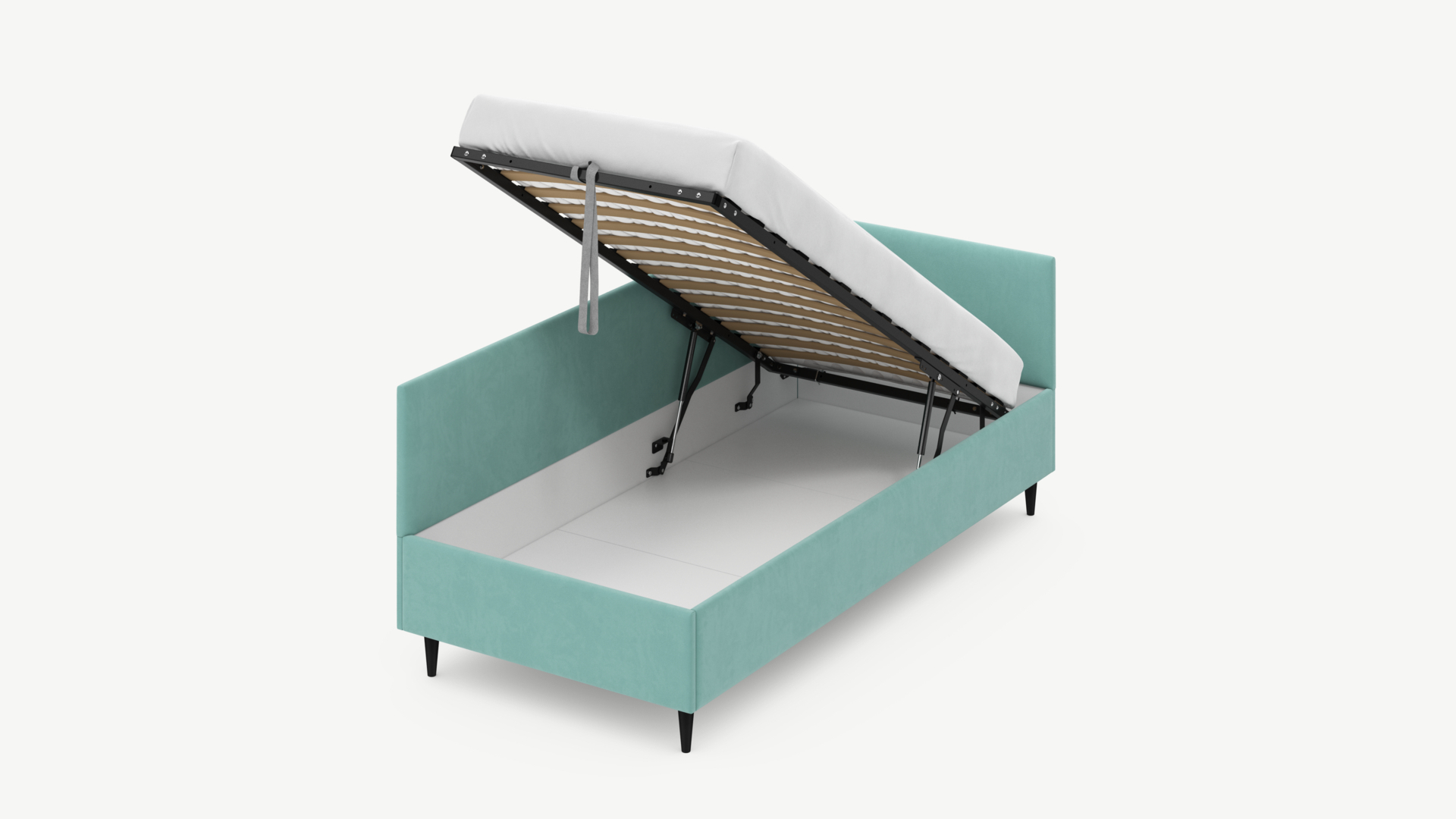 • Скрытая под основанием вместительная емкость без внутренних перегородок позволяет использовать всю площадь подкроватного пространства для хранения вещей.