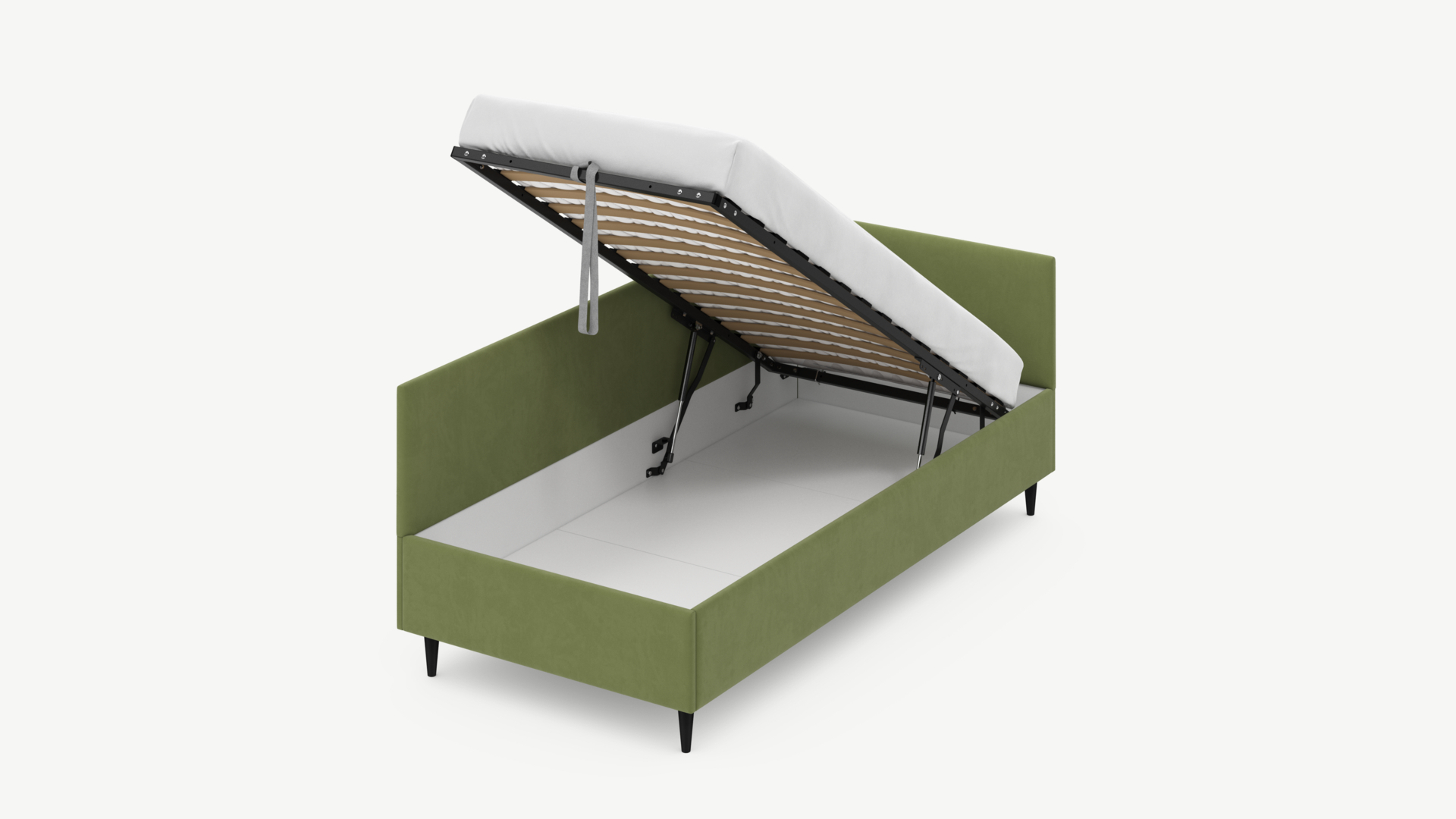 • Скрытая под основанием вместительная емкость без внутренних перегородок позволяет использовать всю площадь подкроватного пространства для хранения вещей.