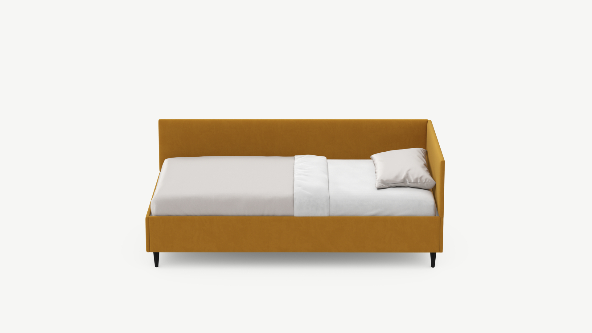 MOON FAMILY 1250 объединяет функциональность и стиль, создавая гармоничное пространство для отдыха и творчества. Кровать доступна в левостороннем и правостороннем исполнении, что позволяет легко адаптировать ее под любые интерьерные особенности.