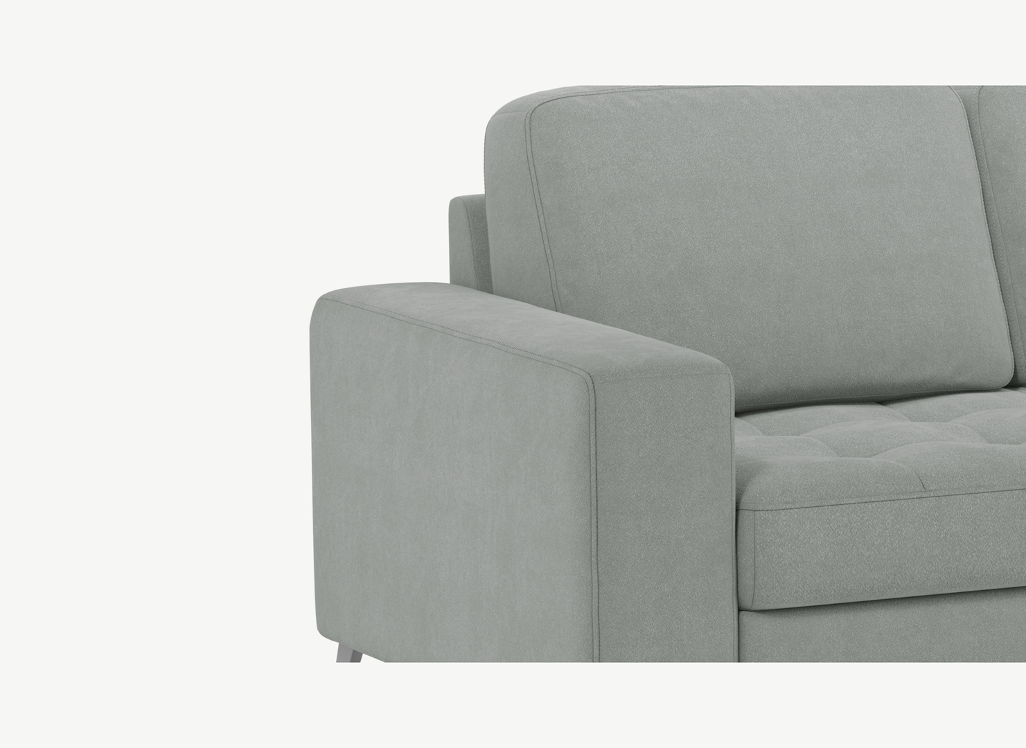Благодаря высоким наклонным опорам под диваном проходит робот-пылесос и легко проводится влажная уборка, что обеспечивает чистоту и порядок в доме.