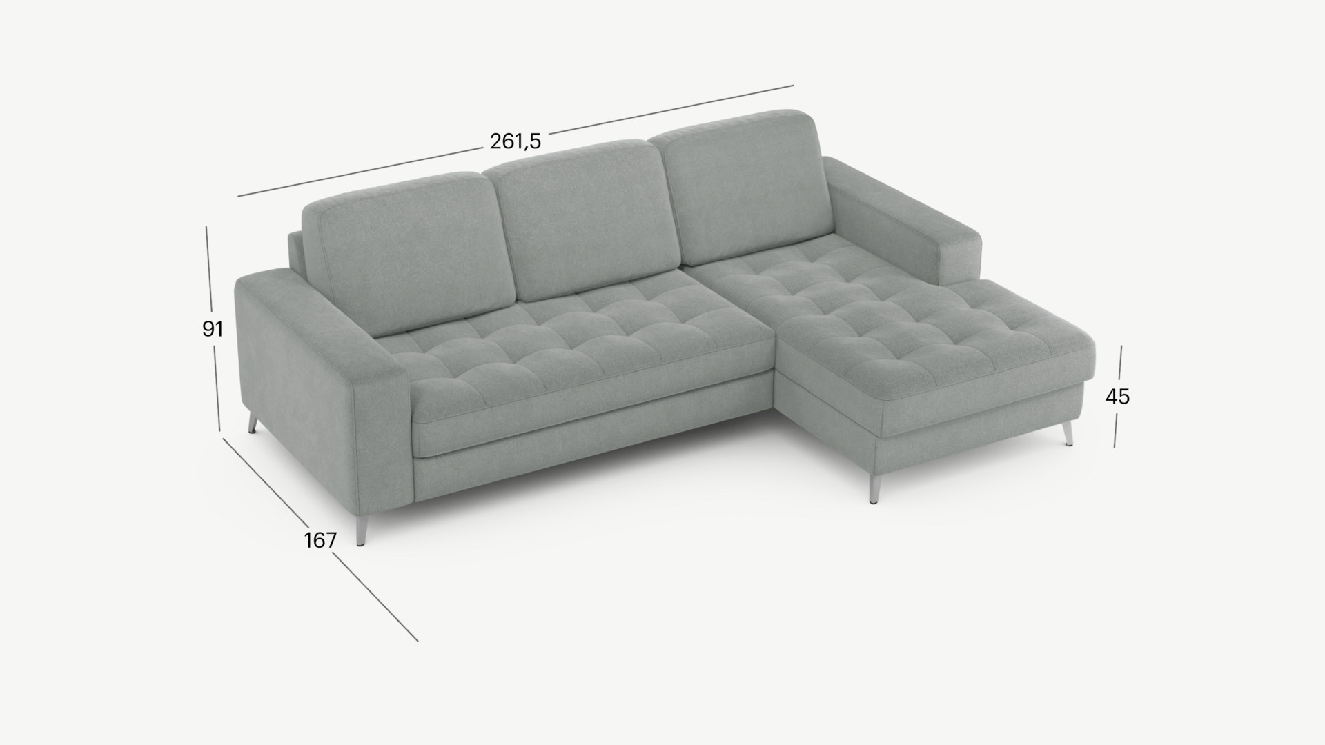 Секция «канапе» обеспечивает дополнительное пространство для отдыха, благодаря которому Вы можете располагаться с максимальным комфортом, удобно вытянув ноги. Под данной секцией расположен вместительный бельевой короб.