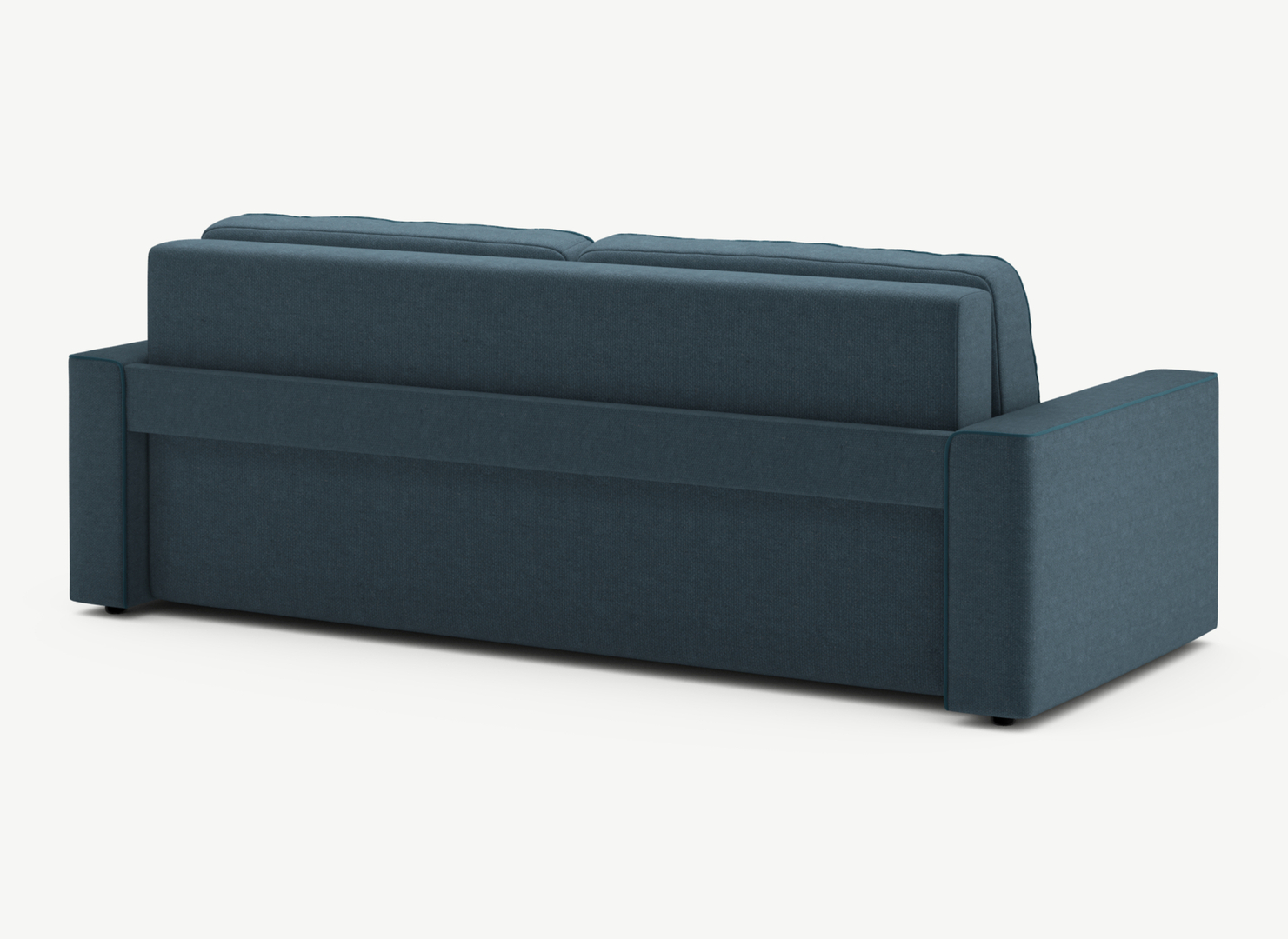 Красивый вид дивана со всех сторон. Спинка дивана, полностью облицованная обивочным материалом, придает изделию эстетичный внешний вид, завершает его образ и позволяет ставить диван в центре комнаты и/или зонировать пространство.